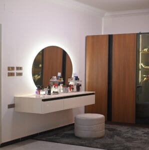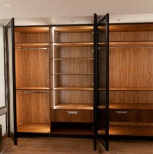في الديب وود نصنع لكِ دريسنجات فاخرة تلبي جميع احتياجاتك. نقدم لكِ تصميمات عصرية وأنيقة، مع الحرص على استخدام أجود المواد الطبيعية. فريقنا من الخبراء سيعمل معكِ لخلق مساحة تخزين مثالية تناسب ذوقك وأسلوب حياتك. استمتعي بترتيب ملابسك وإكسسواراتك في دريسنج أنيق وعملي